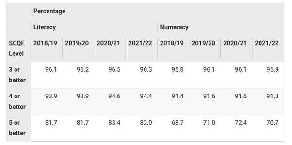 Education is Scotland is driven by bad statistics. Take the headline statistics for Numeracy and Literacy: